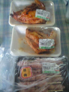 お父さん……鶏肉!!いやね、お返しいらないって言ったんだよ。言い続けるつもりだったんだよ!!でもさ……「鳥のもも焼きにしようか?」って言われたら…ねぇ?「うん」って言っちゃうでしょうよ(´`) 焼鳥まで…。私が「タレは邪道だよ!!」って言ったのを覚えてたのか、生を買ってきた。絶対塩こしょうだよ!!なんでタレのばっかり売ってあるんだろ?(`´)